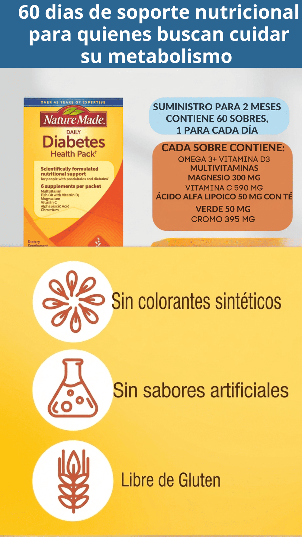 Seguridad: Sin gluten, sin azúcar, sin colorantes |